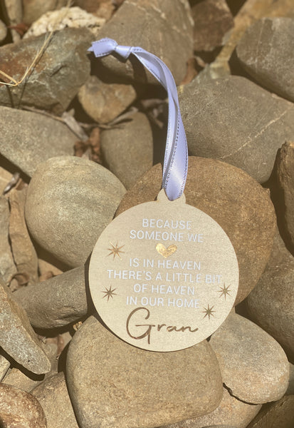 Honor the life of someone dear with a custom memorial bauble designed to capture their spirit. Crafted with care and personalised with their name, this keepsake brings comfort during the holidays and beyond. Whether displayed on the tree or given as a thoughtful gift, becoming a touching tribute that honors those who may no longer be with us but remain forever in our hearts, keeping their memory shining bright.